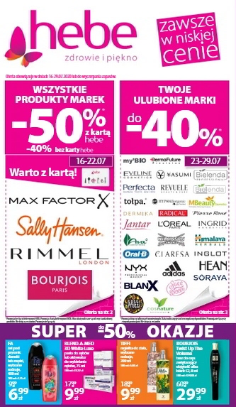 {loadposition linkHebe} Nowa gazetka promocyjna drogerii Hebe. Polecane promocje z gazetki Hebe: Żel pod prysznic Fa 400 ml - 6,99 zł. Mgiełka do ciała Tiffi 200 ml - 9,99 zł. Tusz do rzęs zwiększający objętość Bourjois Twist Up…
