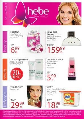 {loadposition linkHebe} Nowa gazetka promocyjna drogerii Hebe - "Bestsellery w supercenach". Polecane promocje z gazetki Hebe: Masełko do ust Bielenda 15 g - 6,99 zł. Żel pod prysznic Original Source 250 ml - 5,99 zł. Woda perfumowana damska HUGO…