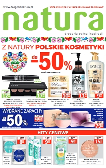 {loadposition linkNatura} 'Z natury polskie kosmetyki do -50%' - nowa gazetka promocyjna Drogerii Natura. Polecane promocje z gazetki Drogerii Natura: Krem do twarzy na dzień i na noc Eveline Gold Lift Expert 60+ 50 ml - 10,99 zł. …