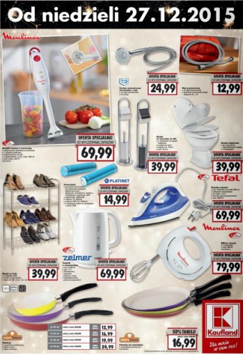 {loadposition linkKaufland} Nowa gazetka promocyjna marketu Kaufland. Polecane promocje z gazetki Kaufland: Blender ręczny z zawieszką Moulinex - 69,99 zł. Wąż prysznicowy 2 m - 12,99 zł. Żelazko parowe Moulinex - 69,99 zł. Oferta ważna od 27.12 do…
