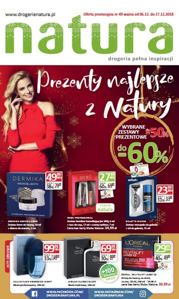 {loadposition linkNatura} 'Prezenty najlepsze z natury' - nowa gazetka promocyjna Drogerii Natura. Polecane promocje z gazetki Drogerii Natura: Zestaw Dermika Neocollagen - 49,99 zł. Zestaw Gillette Mach3 - 23,99 zł. Woda perfumowana Calvin Klein Obsession Night 100 ml -…