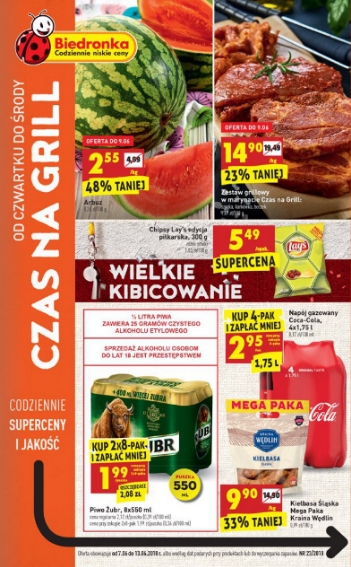 {loadposition linkBiedronka2} 'W tym tygodniu czas na grill' - nowa gazetka promocyjna sieci sklepów Biedronka. Polecane promocje z gazetki sieci Biedronka: Arbuz 1 kg - 2,55 zł. Zestaw grillowy w marynacie Czas na grill 1 kg -…