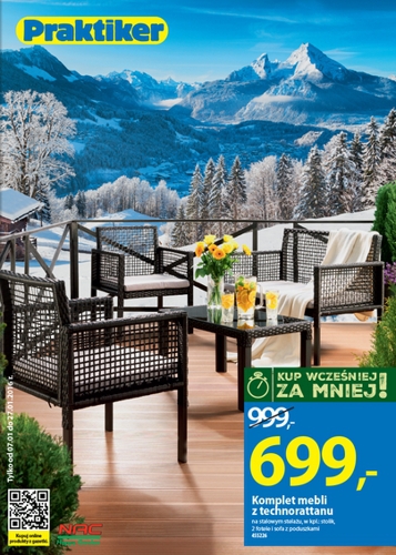 Nowa gazetka promocyjna Praktiker. Polecane promocje z gazetki Praktiker: Zestaw mebli z technorattanu - 699 zł. Zestaw mebli kuchennych Eliza - 499 zł. Zestaw do jadalni Malcolm wenge - 399 zł. Oferta ważna od 7.01 do 27.01.