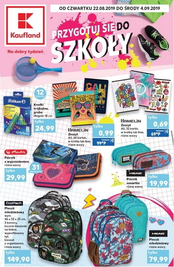 {loadposition linkKaufland} Nowa gazetka promocyjna sieci marketów Kaufland. Polecane promocje z gazetki Kaufland: Plecak dziecięcy Psi Patrol - 39,99 zł. Zeszyt A5 Hamelin 16 kartek - 0,69 zł. Kredki Bambino 12 kolorów - 15,99 zł. Oferta ważna…