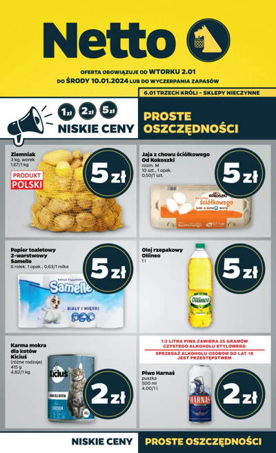 {loadposition linkNetto} 'Dyskontowe asy tygodnia' - nowa gazetka promocyjna sieci sklepów Netto. Polecane promocje z gazetki Netto: Ziemniaki 5 kg - 8,99 zł. Filet z piersi kurczaka Sztuka Mięsa 1 kg - 11,99 zł*. Olej rzepakowy Wielkopolski 1 L…