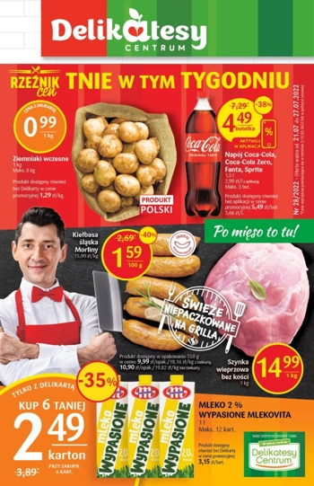 {loadposition linkDelikatesyCentrum2} 'Rzeźnik cen' - nowa gazetka promocyjna Delikatesów Centrum. Polecane promocje z gazetki Delikatesów Centrum: Ziemniaki wczesne 1 kg - 0,99 zł*. Kiełbasa śląska Morliny 100 g - 1,59 zł. Szynka wieprzowa bez kości 1 kg - 14,99…