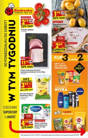 {loadposition linkBiedronka1} 'W tym tygodniu' - nowa gazetka promocyjna sieci sklepów Biedronka. Polecane promocje z gazetki sieci Biedronka: Pomidory gałązka 1 kg - 2,79 zł. Ziemniaki wczesne 1 kg - 1,99 zł. Ser żółty Radamer Światowid 2x250…