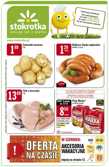 Nowa gazetka promocyjna sieci handlowej Stokrotka. Polecane promocje z gazetki Stokrotka: Ziemniaki wczesne 1 kg - 1,69 zł. Kiełbasa śląska regionalna Olewnik 100 g - 1,29 zł. Filet z kurczaka 1 kg - 13,49 zł. Oferta ważna…