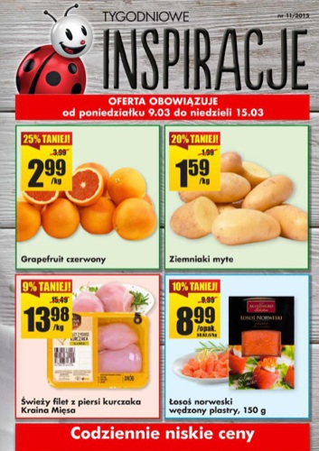 {loadposition linkBiedronka} Nowa gazetka promocyjna sieci handlowej Biedronka - "Inspiracje tygodniowe". Polecane promocje z gazetki sieci Biedronka: Grapefruit czerwony 1 kg - 2,99 zł. Ziemniaki myte 1 kg - 1,59 zł. Łosoś norweski wędzony plastry 150 g - 8,99…