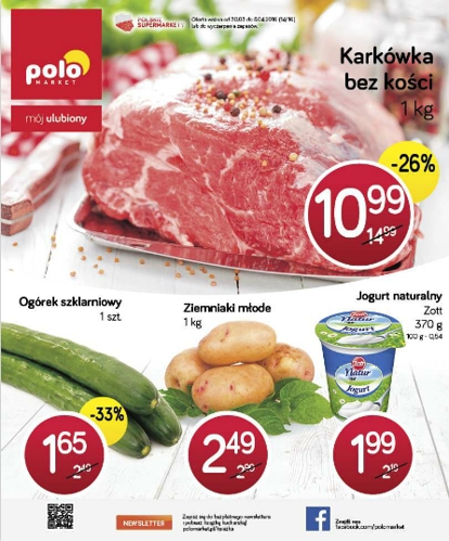 {loadposition linkPoloMarket} Nowa gazetka promocyjna Polo Market. Polecane promocje z gazetki Polo Market: Karkówka bez kości 1 kg - 10,99 zł. Ogórek szklarniowy 1 sztuka - 1,65 zł. Ziemniaki młode 1 kg - 2,49 zł. Oferta ważna od…
