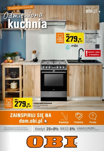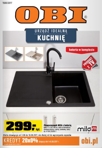 {loadposition linkObi} Nowa gazetka promocyjna Obi - "Urządź idealną kuchnię". Polecane promocje z gazetki Obi: Zlewozmywak Milo z baterią - 299 zł. Bateria Raso - 199 zł. Bateria Shira - 39,99 zł. Oferta ważna…