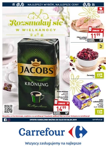 {loadposition linkCarrefour} 'Rozsmakuj się w Wielkanocy' - nowa gazetka promocyjna sieci marketów Carrefour. Polecane promocje z gazetki Carrefour: Kawa mielona Jacobs Kronung 500 g - 14,99 zł*. Filet z piersi kurczaka 1 kg - 11,99 zł*. …