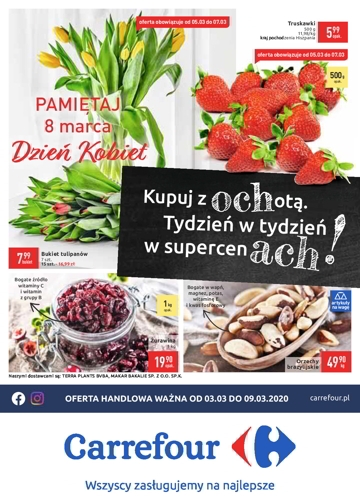 {loadposition linkCarrefour} 'Kupuj z ochotą. Tydzień w tydzień w supercenach!' - nowa gazetka promocyjna sieci marketów Carrefour. Polecane promocje z gazetki Carrefour: Truskawki 500 g - 5,99 zł. Żurawina 1 kg - 19,90 zł. Orzechy brazylijskie…