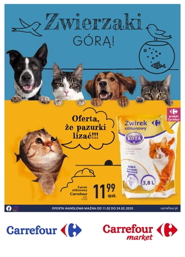 'Misja: Lato z pupilem czas start' - nowa gazetka promocyjna sieci marketów Carrefour. Polecane promocje z gazetki Carrefour: Karma sucha dla psa Friskies 3 kg - 24,99 zł. Karma dla kota Whiskas 4x400 g - 17,99 zł. Żwirek silikonowy…