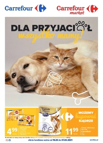 {loadposition linkCarrefour6} 'Dla przyjaciół wszystko mamy!' - nowa gazetka promocyjna sieci marketów Carrefour. Polecane promocje z gazetki Carrefour: Karma dla psa Pedigree 4x100 g - 4,99 zł. Żwirek silikonowy dla kota Carrefour 3,8 L - 11,99 zł. Karma dla…