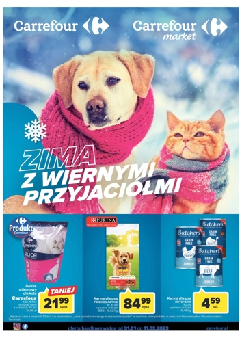 {loadposition linkCarrefour5} 'Zima z wiernymi przyjaciółmi' - nowa gazetka promocyjna sieci marketów Carrefour. Polecane promocje z gazetki Carrefour: Żwirek silikonowy dla kota Carrefour 3,8 L - 21,99 zł. Karma dla psa Friskies Active 10 kg - 84,99 zł. Karma…