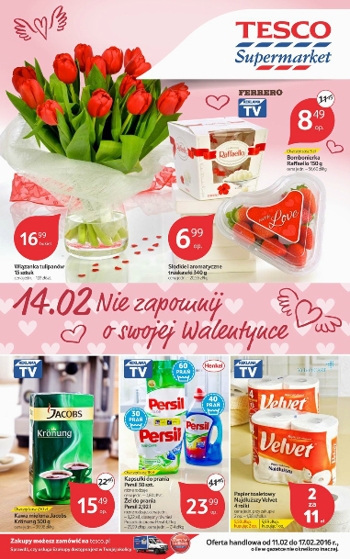 Nowa gazetka promocyjna Tesco – „Nie zapomnij o swojej Walentynce”.