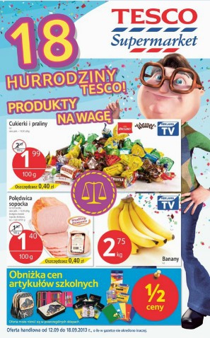 Nowa gazetka promocyjna Tesco – „18 hurrodziny Tesco! Produkty na wagę”.