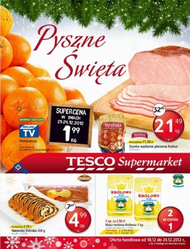 Najnowsza gazetka promocyjna Tesco , a w niej nowe promocje , dostępna od 18.12 do 24.12.
