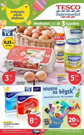 - Jaja Tesco klasa M 15 sztuk – 3,45 zł.