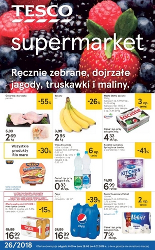 ’Ręcznie zebrane, dojrzałe jagody, truskawki i maliny’ – nowa gazetka promocyjna sieci sklepów Tesco.