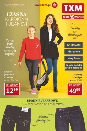 ’Czas na kardigani jeansy!’ – nowa gazetka promocyjna sieci sklepów Textil Market.