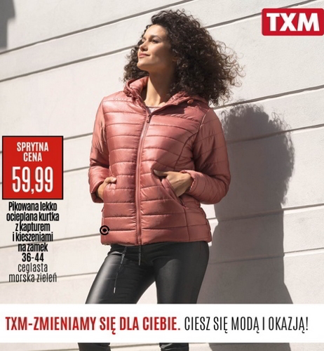 Pikowana lekko ocieplana kurtka damska z kapturem i kieszeniami na zamek – 59,99 zł.