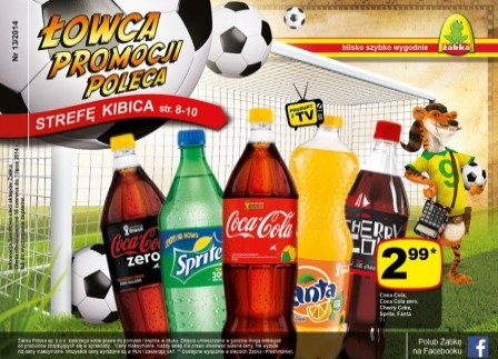 Nowa gazetka promocyjna sieci sklepów Żabka – „Łowca promocji poleca strefę kibica”.