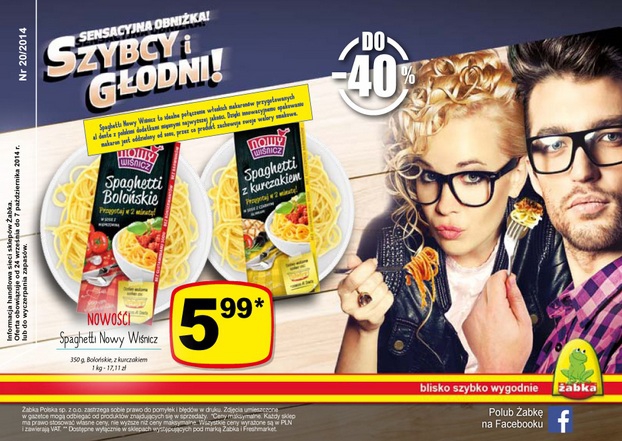 Nowa gazetka promocyjna sieci sklepów Żabka – „Sensacyjna obniżka! Szybcy i głodni!”.