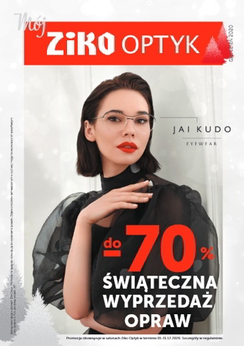 Świąteczna wyprzedaż opraw do -70% w nowej gazetce promocyjnej salonów Ziko Optyk.